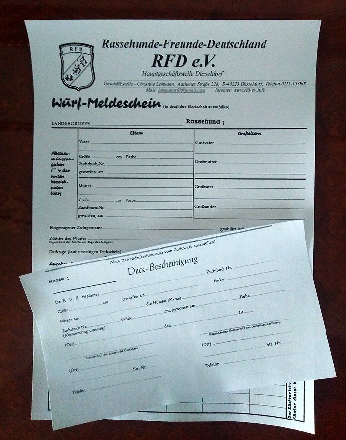Breeders get in touch early with the RFD Studbook and clarify some questions in advance. Is the legal breeding age for your pedigree dog reached or possibly exceeded? Are all forms, notes and documents available? Are all breed-typical examinations completed and are GRSK-certified? Are all findings available and have these been completed with the best results?